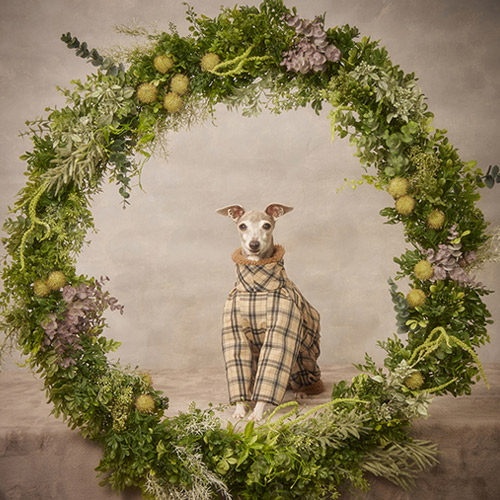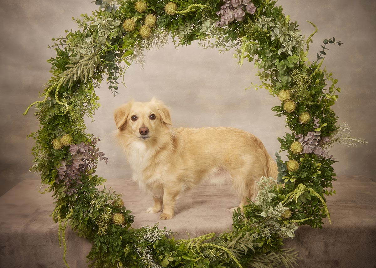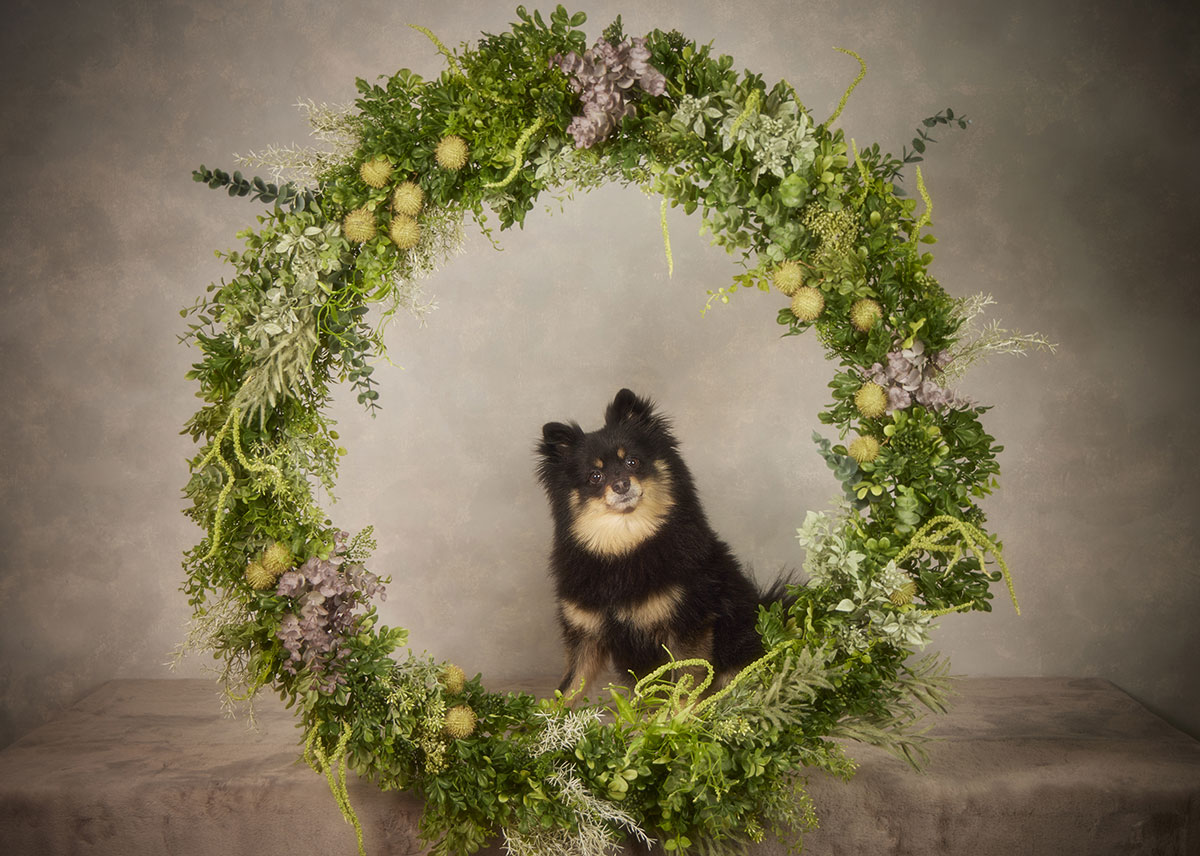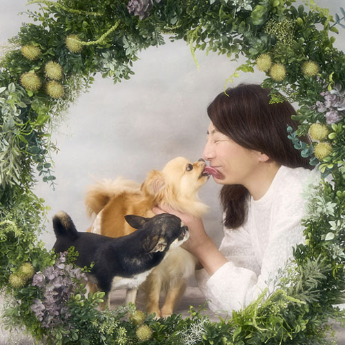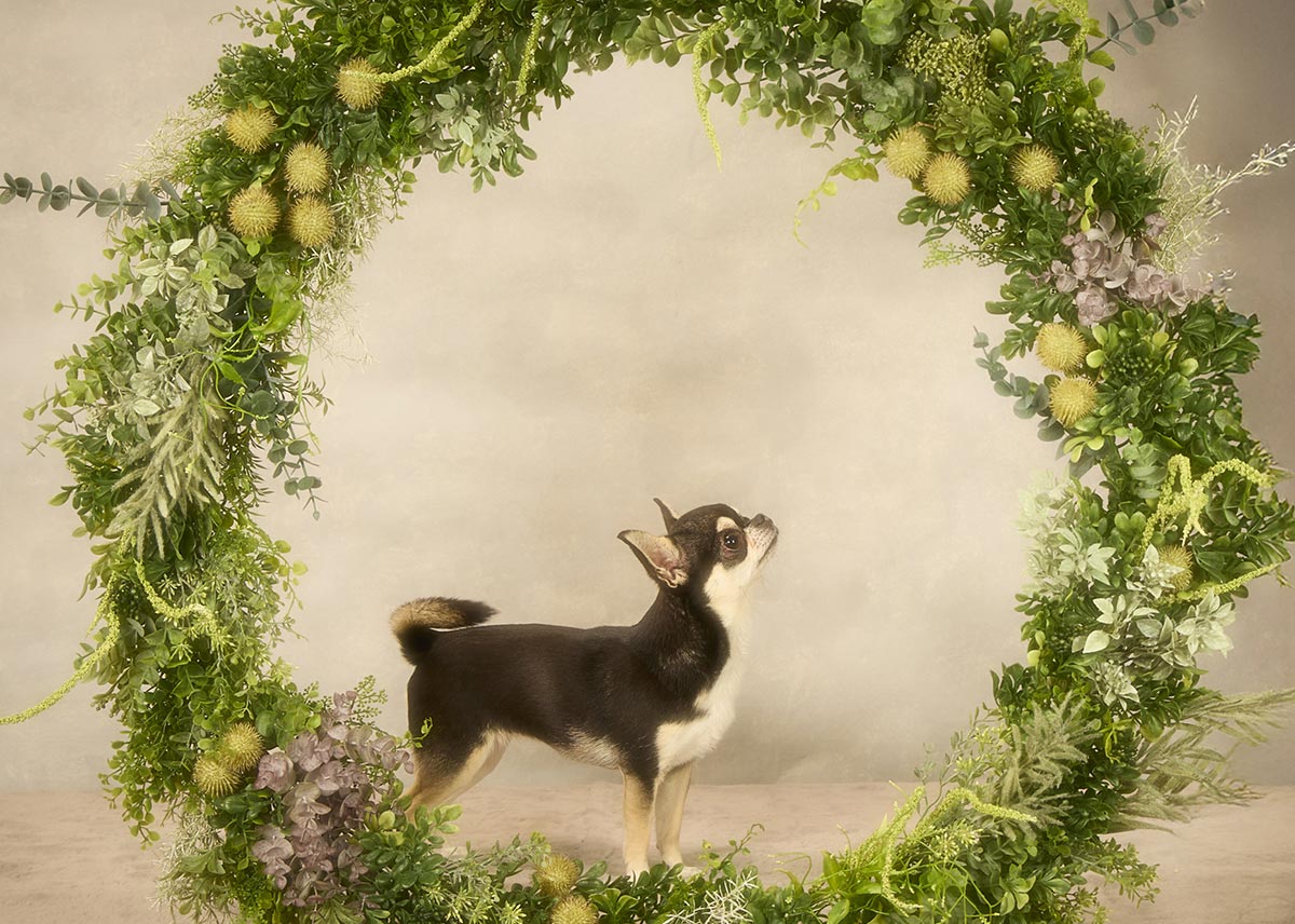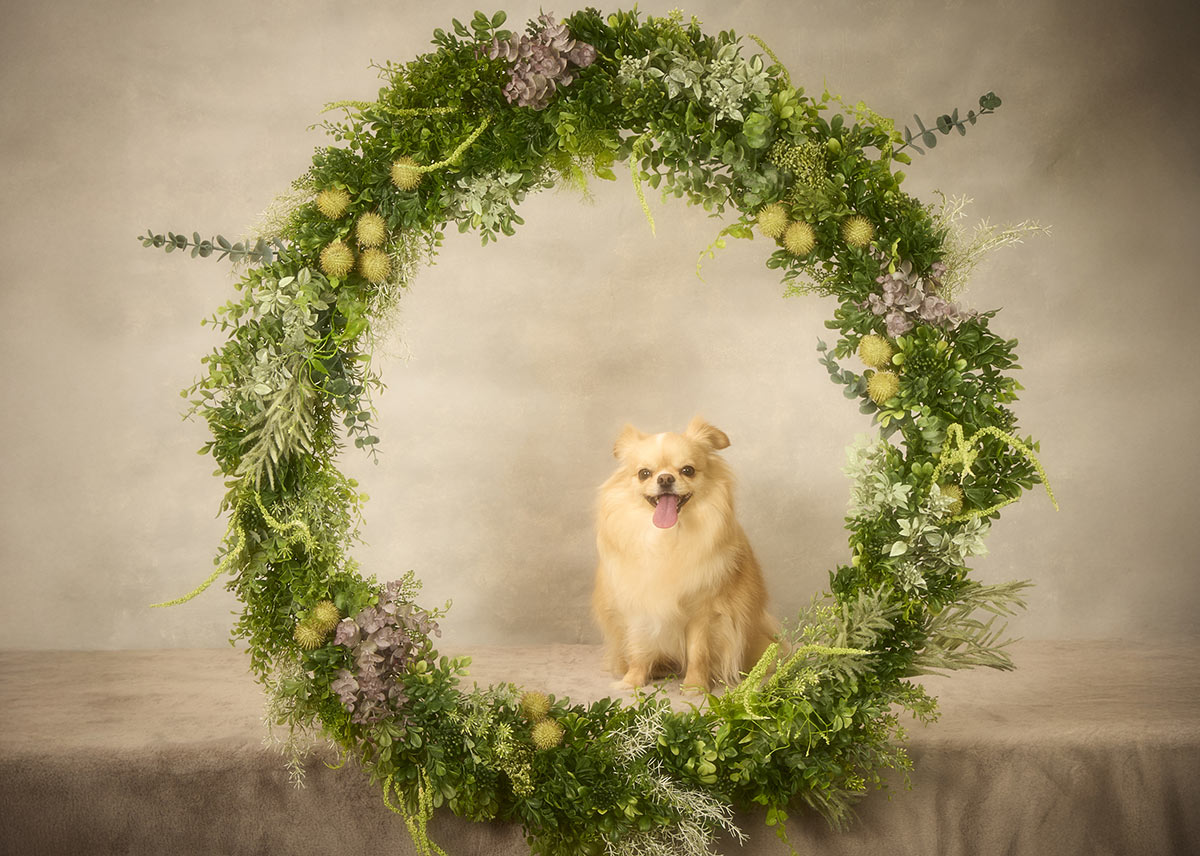 ⼤きなリースにぎゅっと寄り添って撮ると、⾃然と絆が感じられるような⼀枚に。