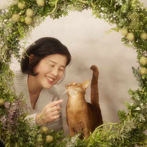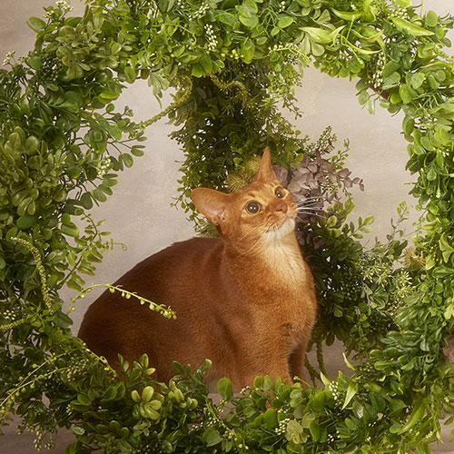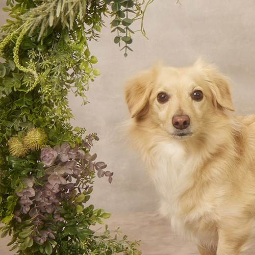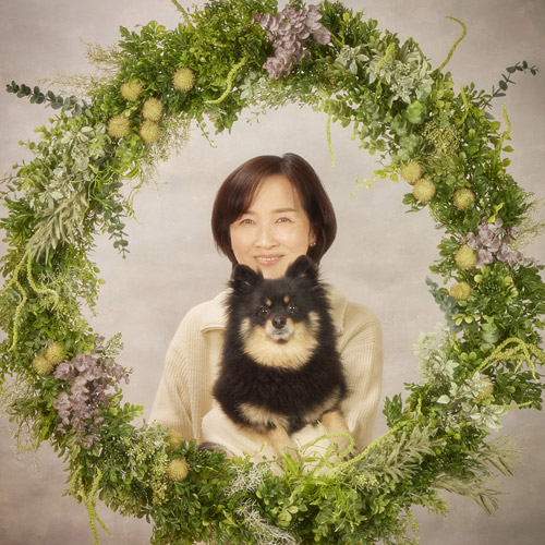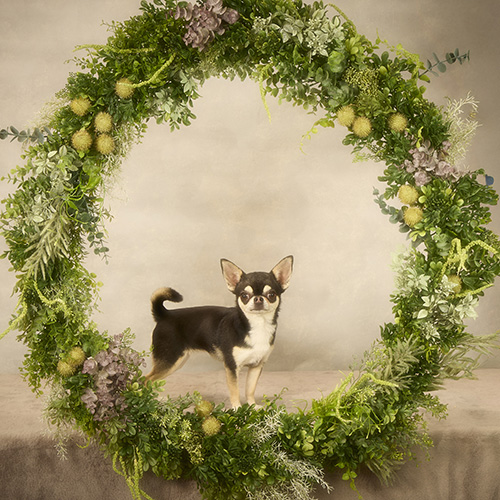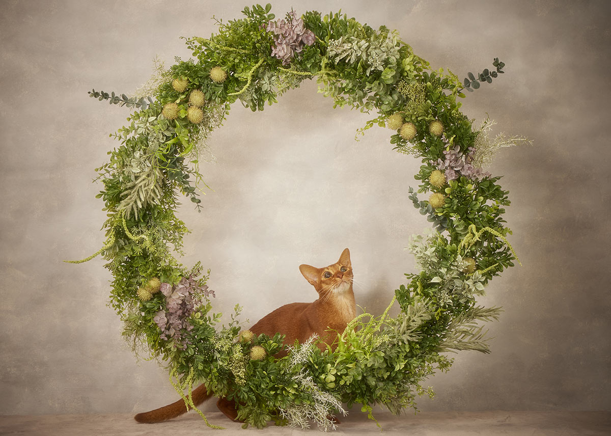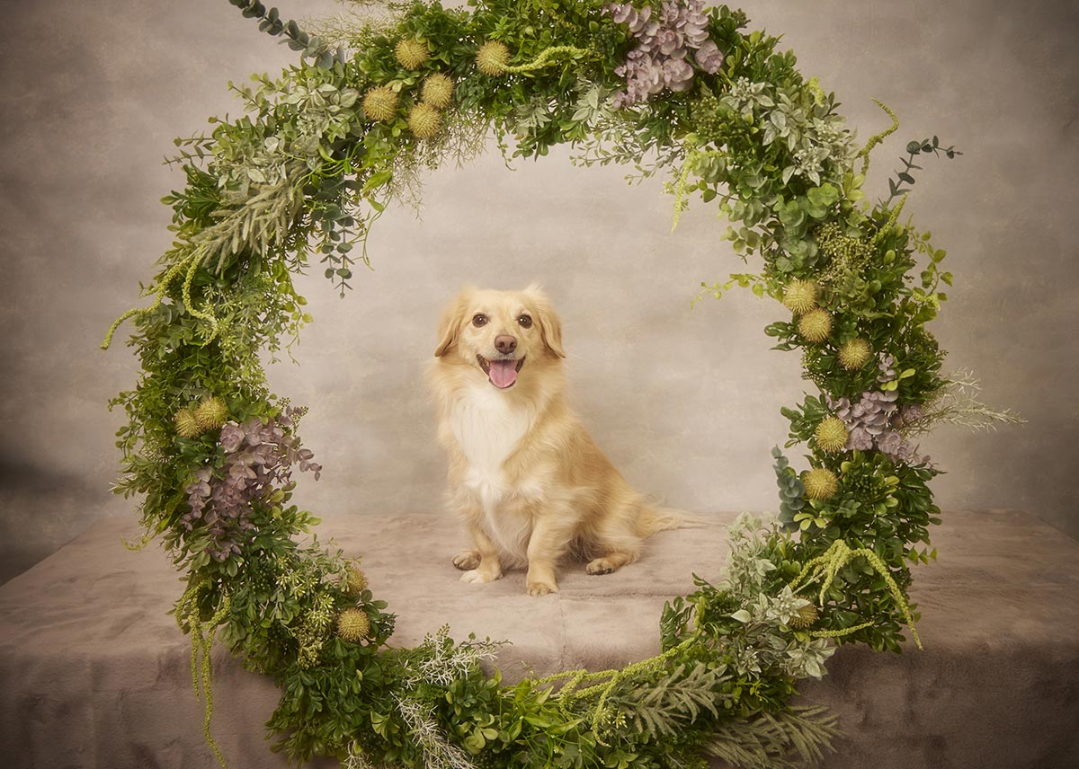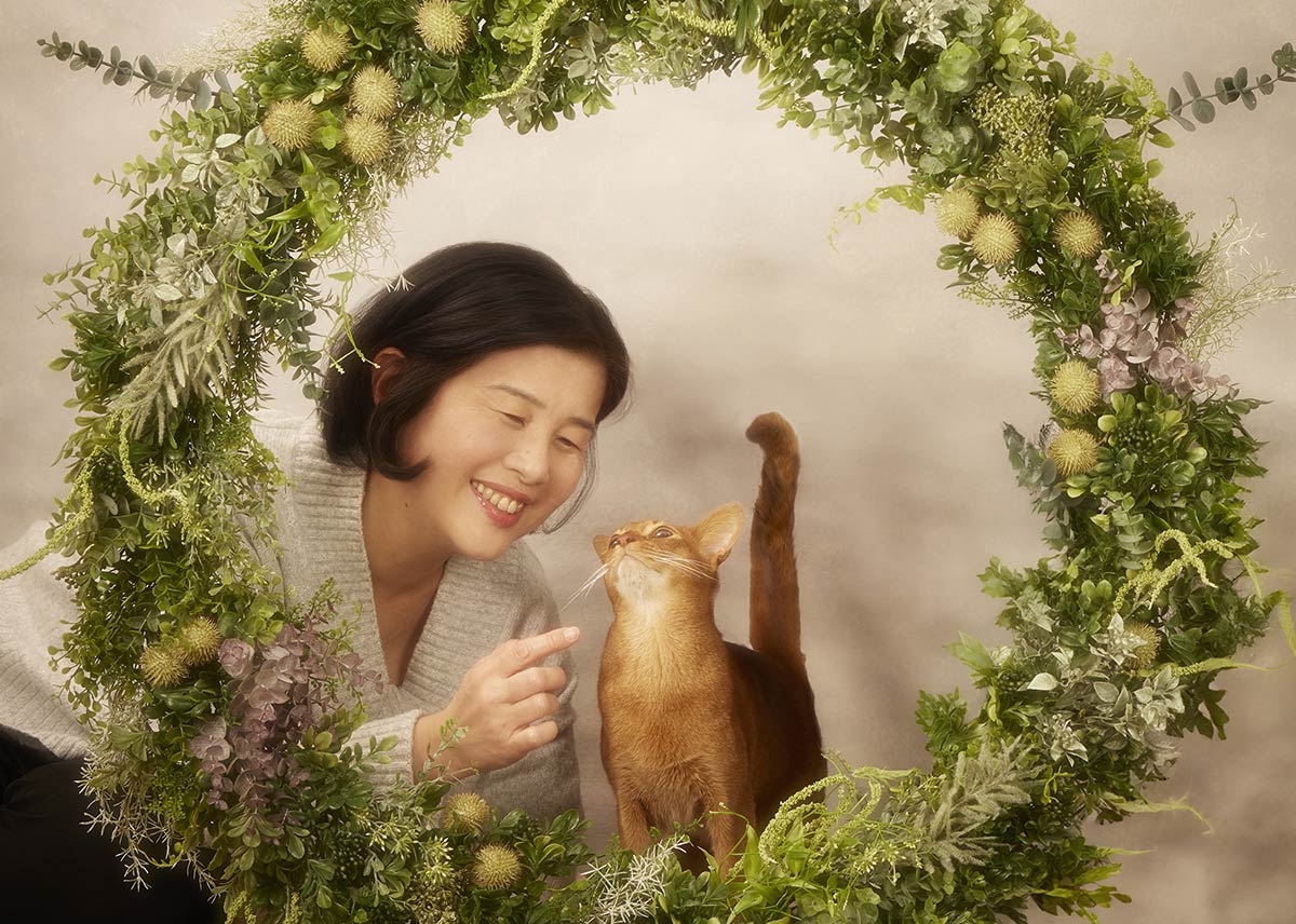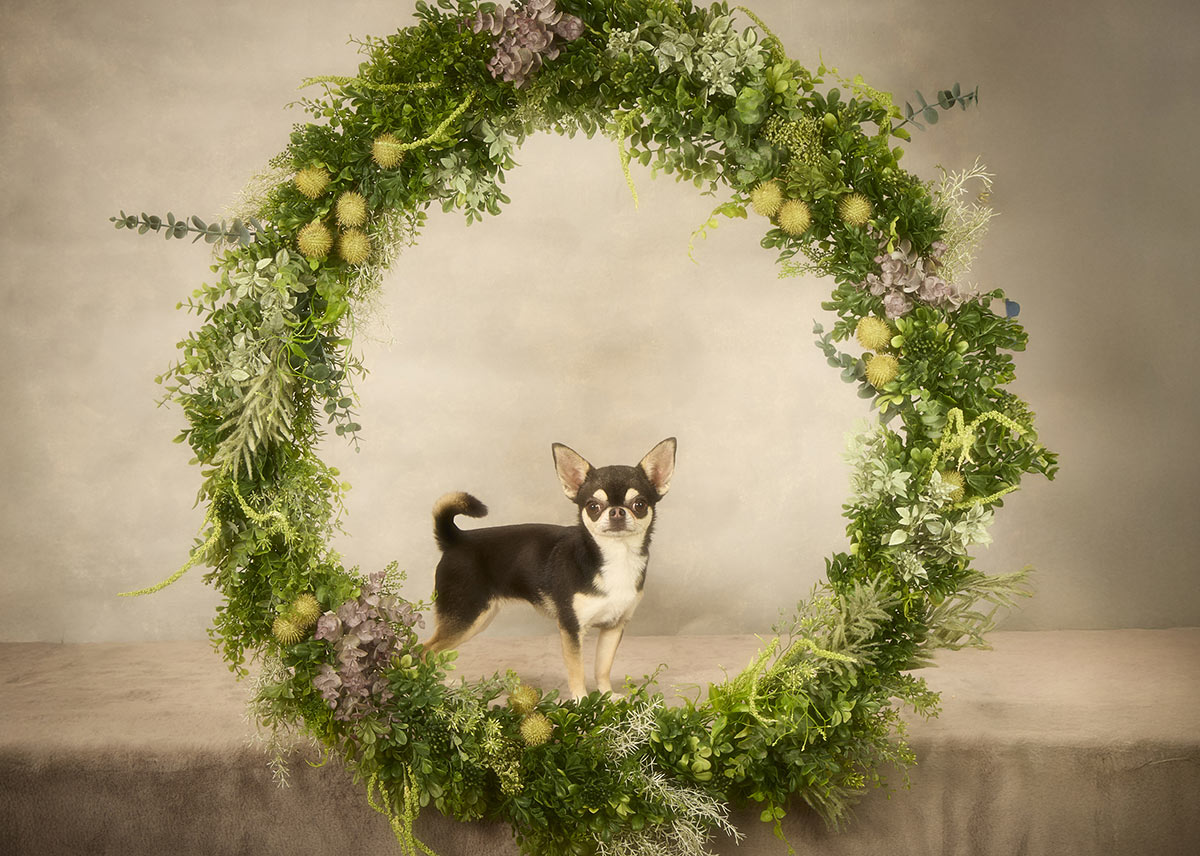 ⼤きなリースにぎゅっと寄り添って撮ると、⾃然と絆が感じられるような⼀枚に。